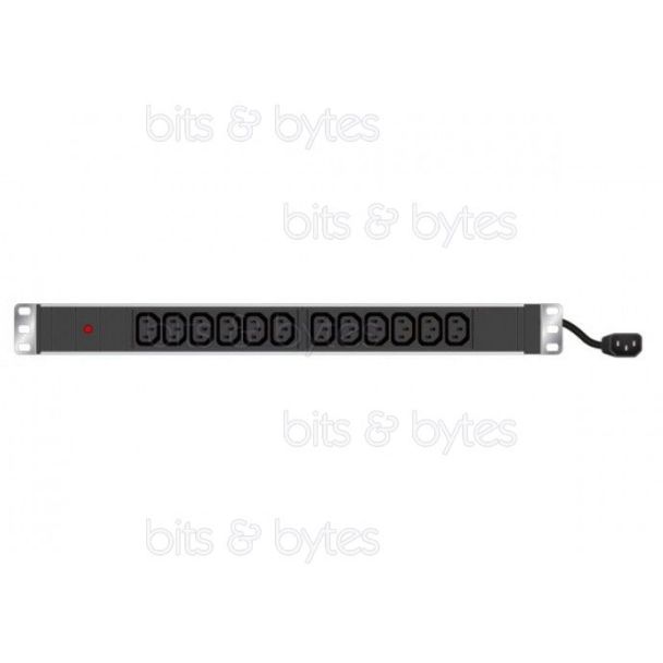 19" Rackmount power strip with 12x IEC C13 female outlets