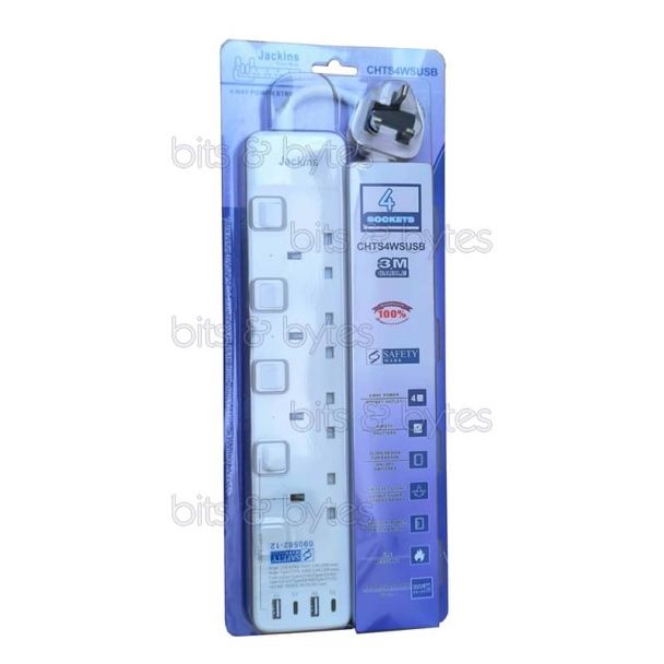 3.0m Extension Lead - 4 Gang with 2x USB-A & 2x USB-C Sockets